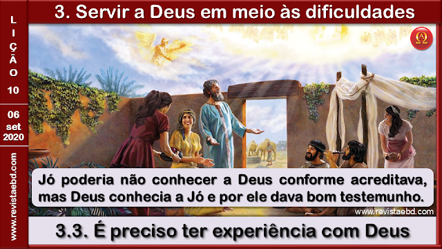 Nesta lição, vimos que, mesmo num contexto de adversidades, Deus é Poderoso para levar adiante o Seu plano na vida dos que nEle confiam e esperam. Enquanto todos em torno de Jó viam a morte, Deus vislumbrava a vida. A história de Jó é um exemplo para todos nós até o dia de hoje.