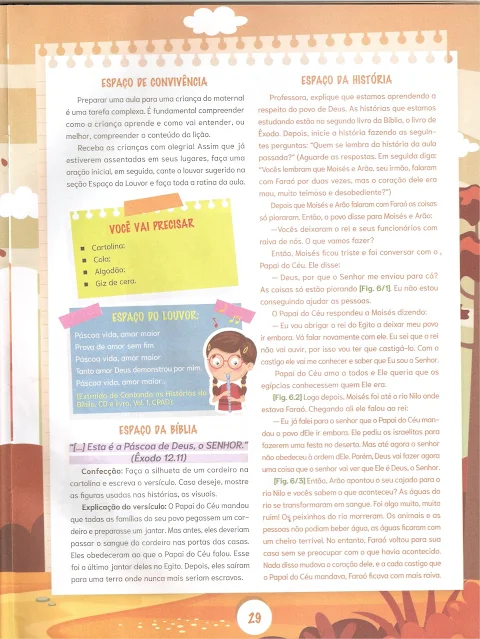 “Uma criança do maternal é capaz de entender mais do que imaginamos. Entretanto, o seu desenvolvimento mental encontra-se ainda na primeira fase, e exige que o ensino seja simplificado e repetido. É por isso que em nossas lições para esta turma repetimos a mesma ideia diversas vezes — no cântico, na explicação do versículo, na história bíblica, nas atividades manuais e até nas brincadeiras. Não se preocupe achando que vai enfadar a criança com tanta repetição. Ao contrário, ela as apreciará e assimilará a ideia” (Marta Doreto).